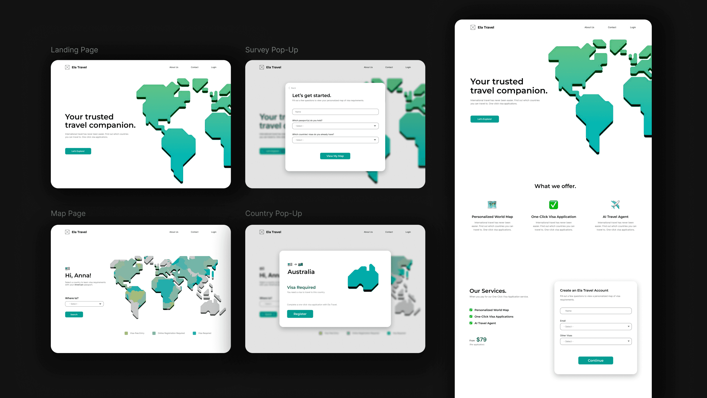 Ela Travel is a startup developing an app and website to simplify and streamline the visa application process. They needed a brand identity that conveyed trust, clarity, and ease of use while still feeling modern and approachable.